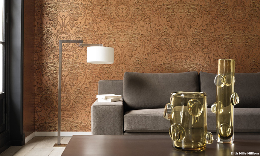 For 2010 Elitis has introduced an amazing collection of new wallcoverings called Foulards. Each design is printed on fabric grained vinyl, the motifs calling to mind antique textiles and carpets of the Far East. Rajastan, one of the stars of the collection, brings the look and feel of rich oriental rugs to your walls.