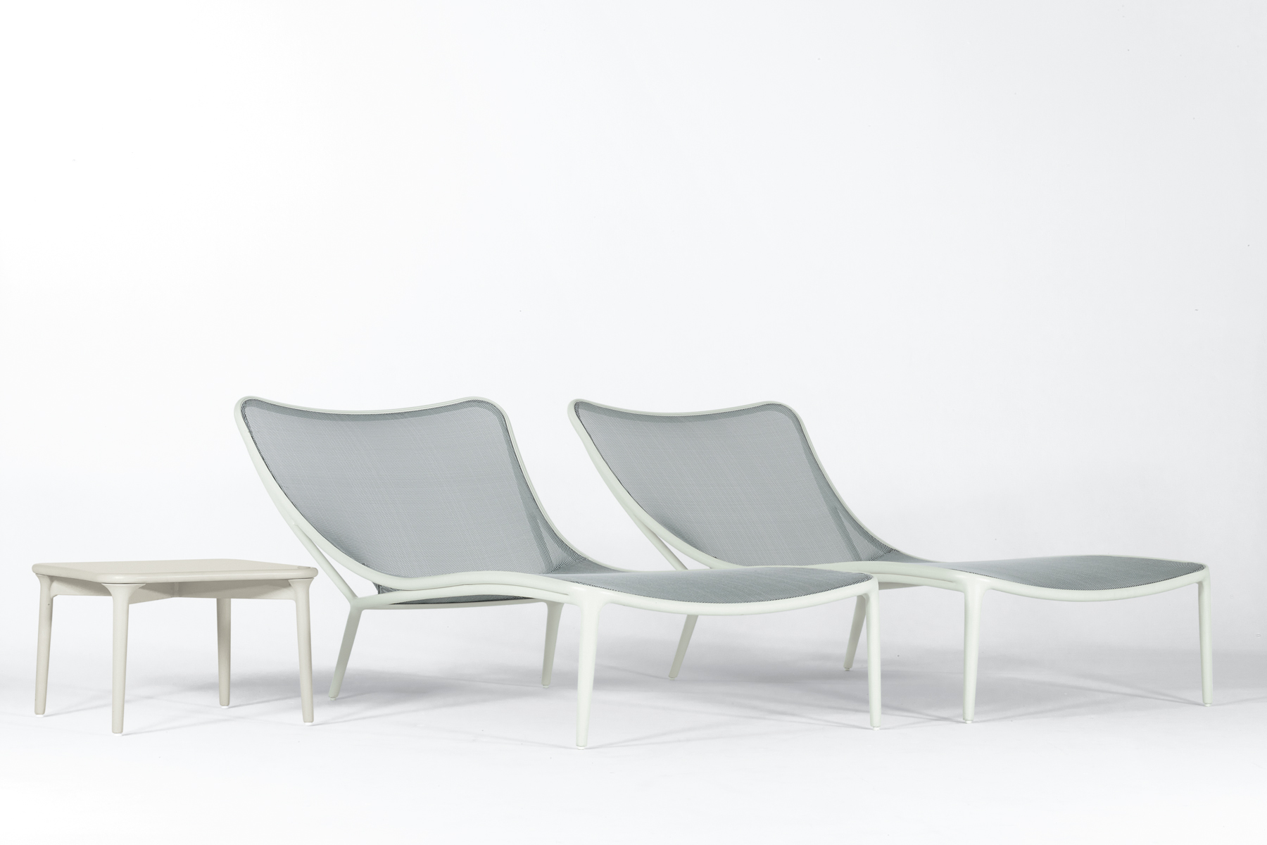 Take your pick: Still, Drift, and Cloud Nine—all three pieces use Brown Jordan's signature materials, including extruded and cast aluminum, parabolic seating, and natural and weathered teak.