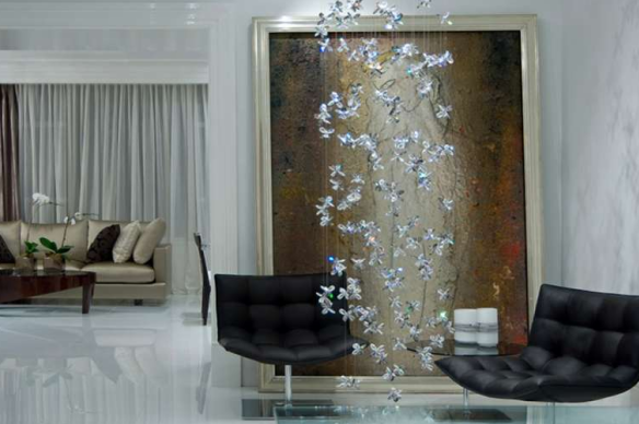 The sparkling installations of crystal and light floating throughout the Moura Starr showroom are impossible to ignore—but why try?