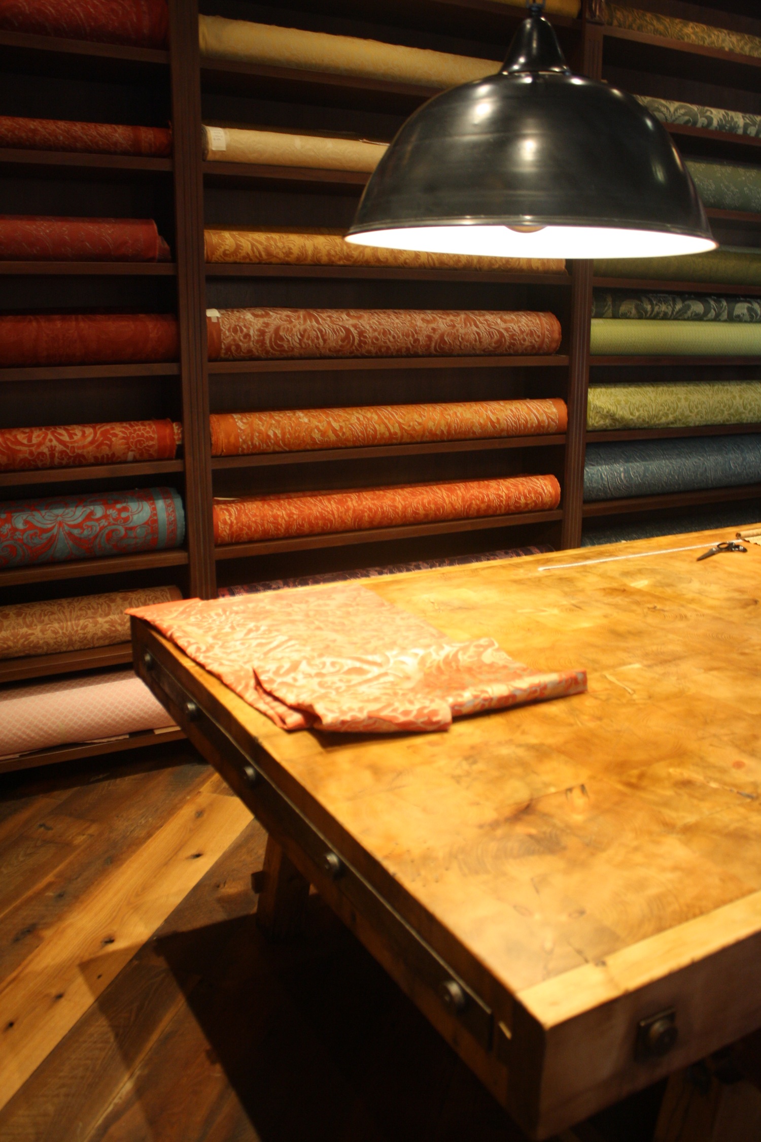 The new products and accessories are accompanied by the deep colors and rich textures we know and love from Fortuny, not to mention the alluring reclaimed oak floors and textile table.