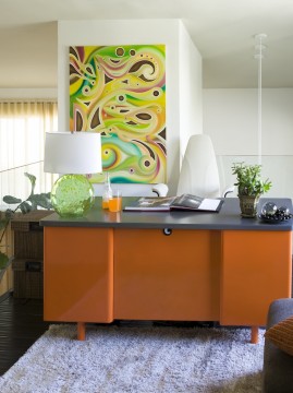 The cover of the book, along with the images shown here, is a project she did for a young man who has been in remission from Cancer. He spent his childhood going through chemo and radiation and came out alive and well. He was happy to find Lori, who could combine a healthy living space with hip style. “And I was happy to meet such a strong and confident man. I couldn't wait to give him a copy of the book with the photographs of his house!"