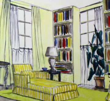 Albert slid his book Albert Hadley: Drawings and the Design Process in front of us and opened it to several of his sketches—the seeds of thought that would later grow into the interiors of some of the most prominent people in the world.