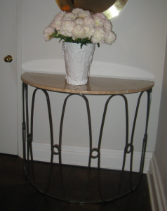 The collection, designed by creative director Skip Rumley, feels decidedly "uncollection" -- like it was assembled over time by a terrific, stylish and well-traveled aunt. And it answers the "where do I get that?" shopping question for those of us who don't have one! This console is suitable for outdoors too, and provides an ample surface for a hallway or nook, without feeling heavy.