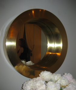 This mirror is cast, with no welding, so it's entirely seamless. It makes a great statement piece, not to mention it serves as a piece of functional sculpture.