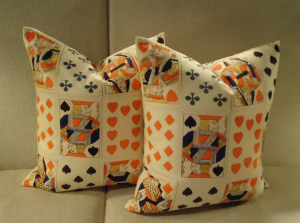 Andrew Martin gets into the spirit with these whimsical pillows (many available as fabric by the yard as well). Perfect for a beach house, and a great alternative to a traditional hostess gift -- at least for your friends with a sense of humor! Pictured above is 60s Show, printed on cotton.