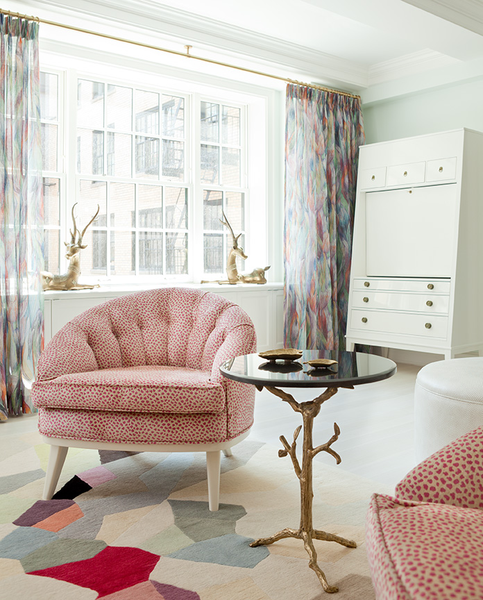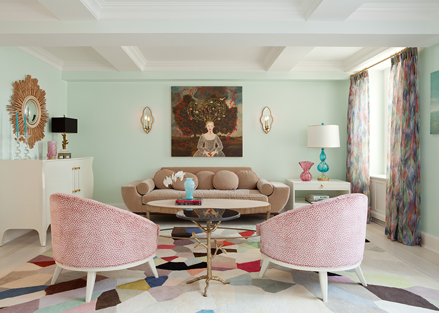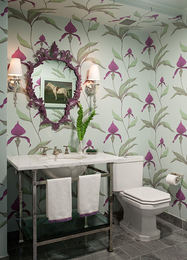 The fantasy mushroom fabric by Missoni at Stark (MZ 0170RQ29), hot pink damasks from Osborne and Little, Cole and Son's wallpaper from Lee Jofa.