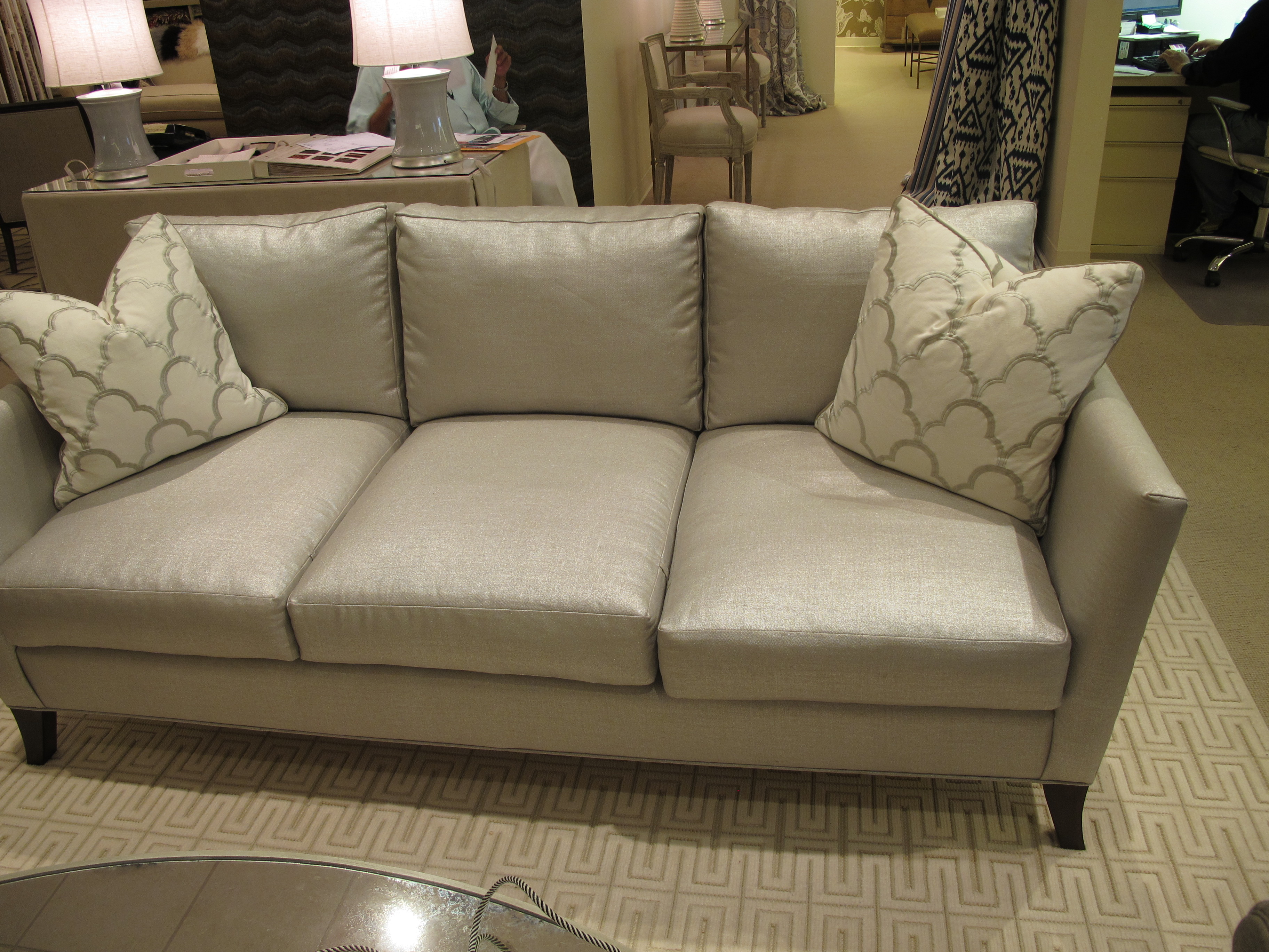 F. Schumacher's Shockwave, pictured on the Copenhagen sofa, adds subtle shimmer: