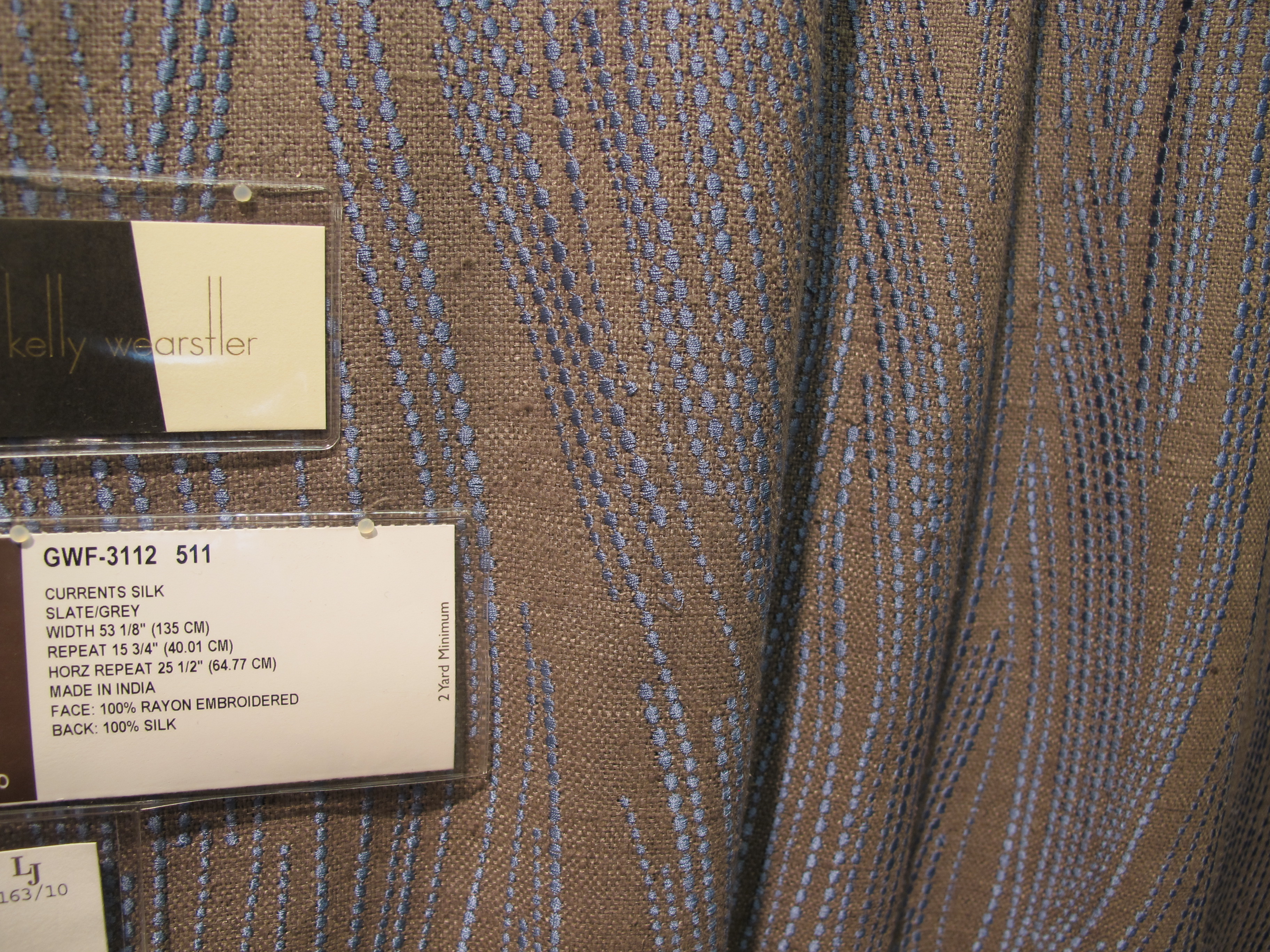 I'll upholster them in this great sort-of neutral silk from Kelly Wearstler for Lee Jofa: