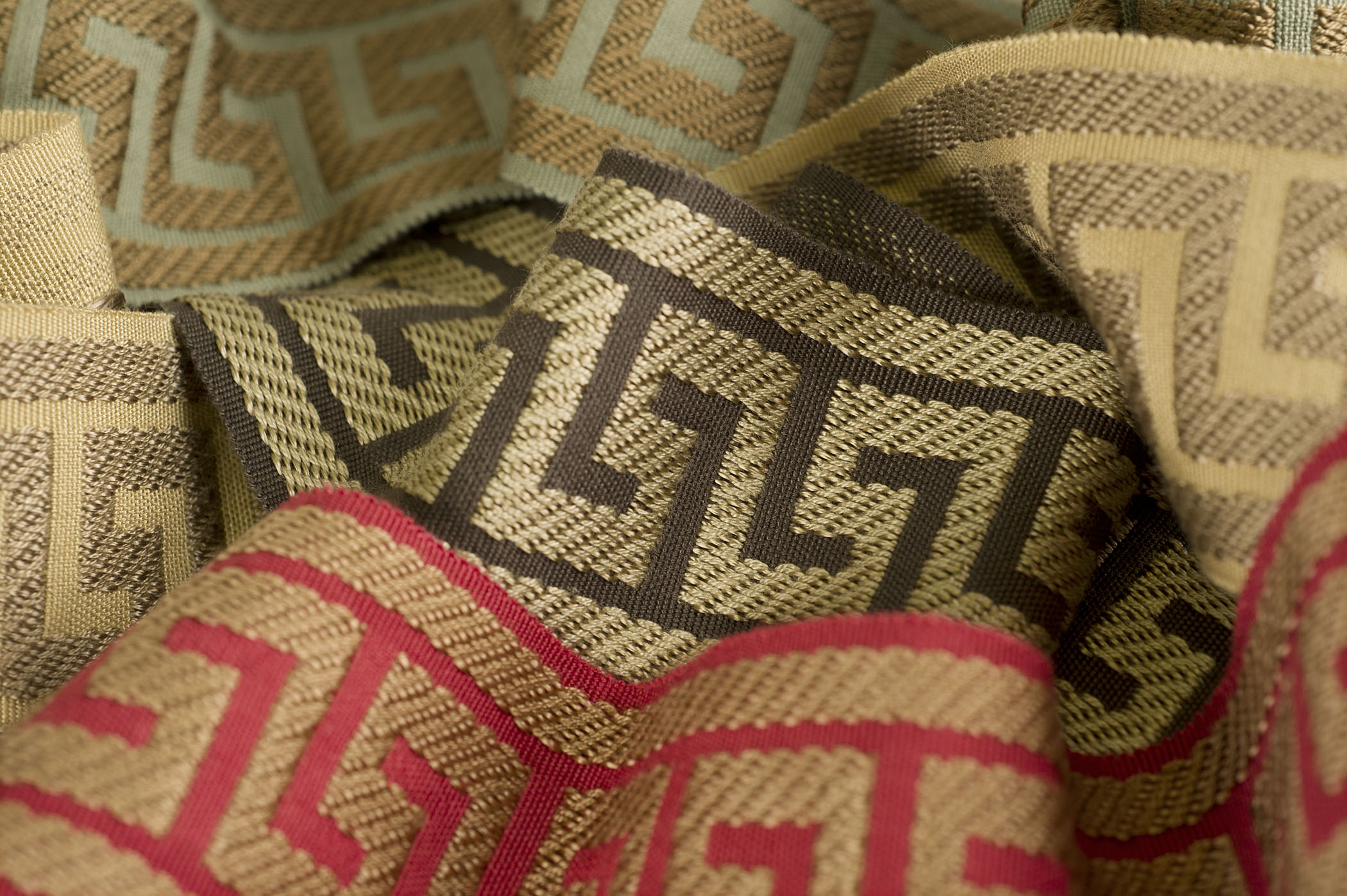 “Our Athens Key has a finer viscose and rayon construction, which results in a better, more quality appearance and a flatter sheen,” says Sharon Cash, director of trim development for Fabricut. “With more picks per inch, Athens Key is a fuller and more colorful design.”