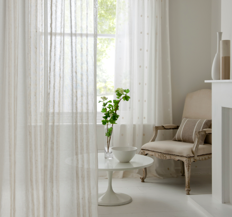 And here's a clever application for sheers - when you don't really want to hide the silhouette of your chairs: