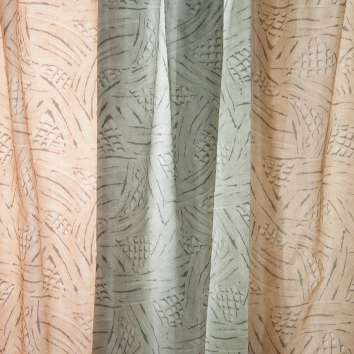 The color palette of Gloria references back to Donghia's Spring/Summer collection (thankfully we don't have to overhaul our pastel color scheme just yet!). The inspiration for the design came from a painting on wax paper. The warp print with an ikat effect casts an ethereal mood, as drapery or decorative touches.