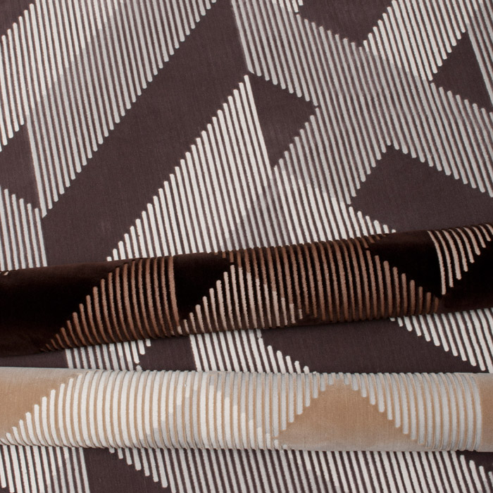 The graphic Natalia, a voided velvet, was inspired by tie in the Donghia archives - our guess is classic 70s! It comes in three colorways.