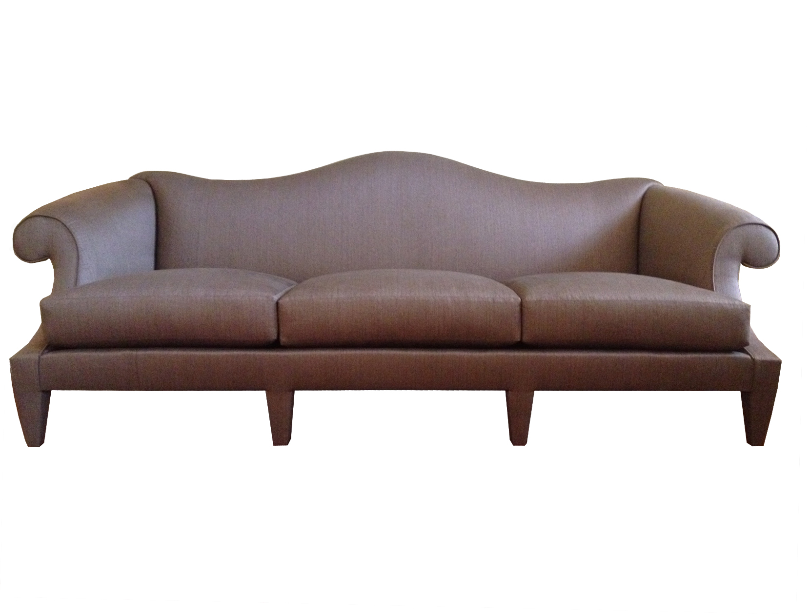 Chewning says, "Savannah was founded in 1733, the same time William Kent was designing in Britain. Savannah is full of historic homes, many with English-inspired interiors. Our Kent sofa design (below) is an homage to the English designer, a classic camel back that has been edited and modernized by fully upholstering the frame and giving it a Donghia arm."