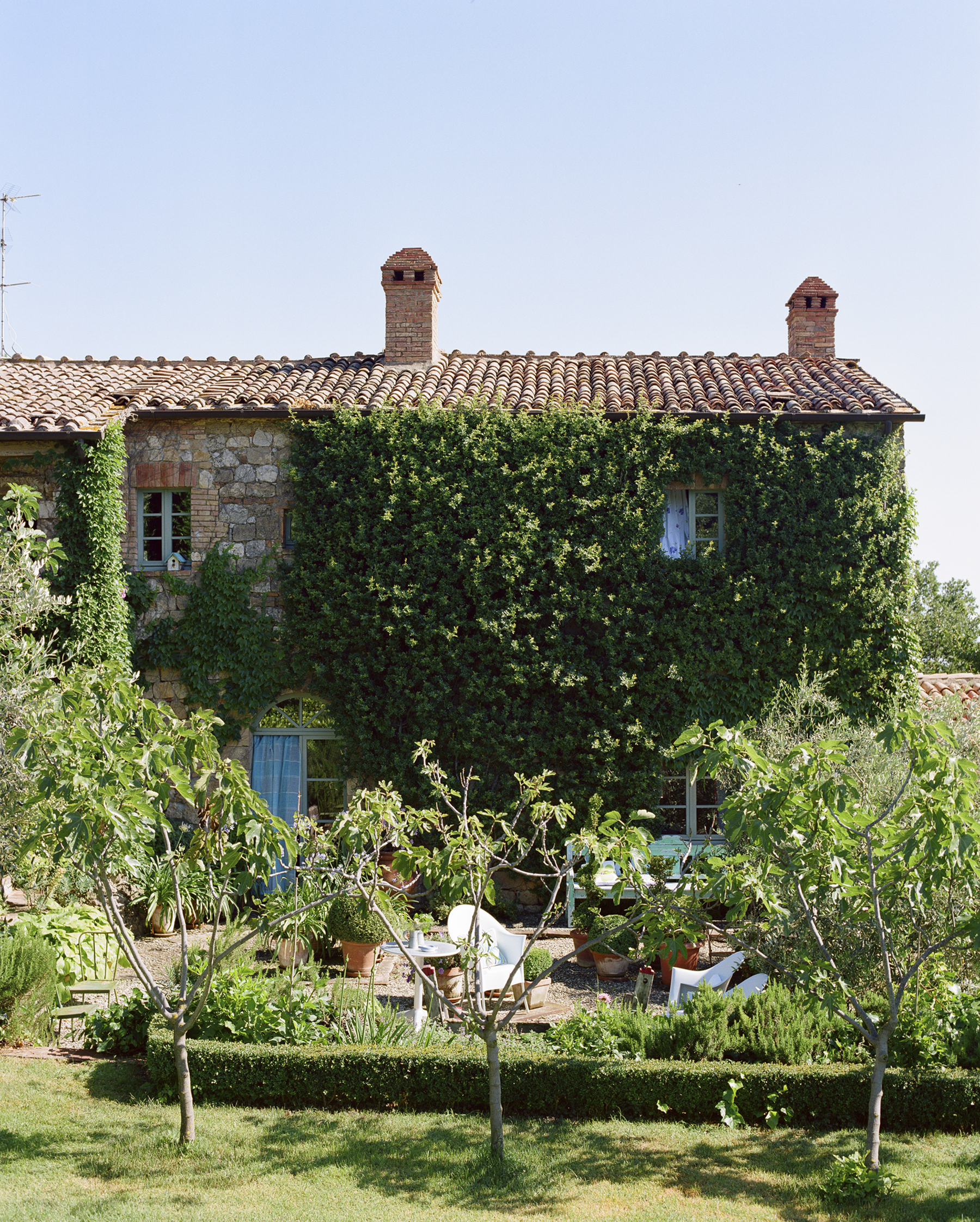 "‘The Saraille design from the new Pavonia wallpaper collection features a fabulous ombre shaded paper in five colorways, including one cobalt blue (pictured below) that is very reminiscent of the Tuscan sky, that vast expanse of deep blue that you can become lost in. The variety of rich vibrant greens in Tuscany from olive, oak and cypress trees and the stone frescoes have all inspired the color palette of the Pavonia saffron print in the Pavonia collection."