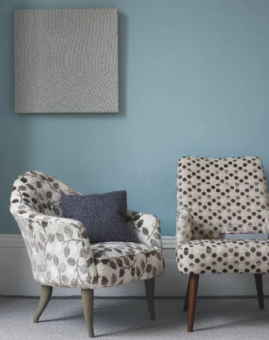 Craving something more neutral? Leafield is pictured on the chair at left, and Tellina on the right: