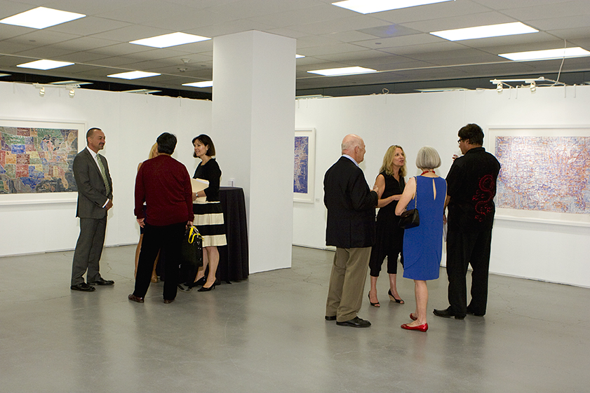 Here are some photos from the opening night gallery reception where guests marveled at her work. Also, take a look back at our interview with Helen Varola, Design Loves Art Curator who chose Scher's exhibit, here.