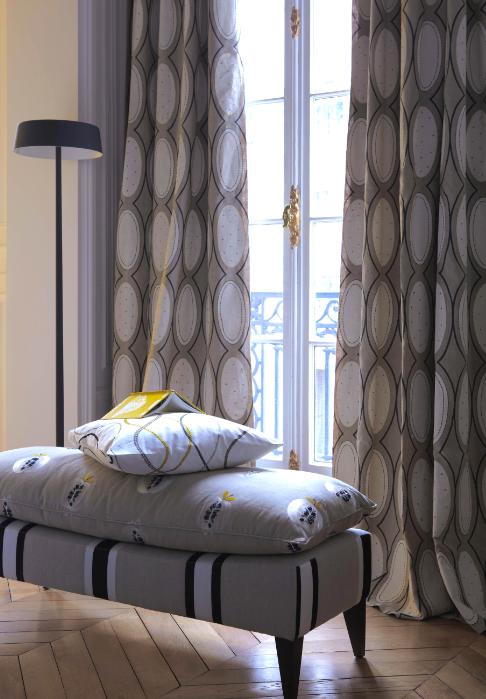 "We just shipped our new Boussac collection to our US showrooms. [We're mad for the absinthe-like color in the collection.] It is inspired by nature, but with a decidedly contemporary spirit. The collection has lots of color, and a sophisticated contrast of natural grounds with embroidery and hand blocked pattern."