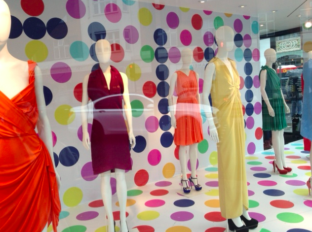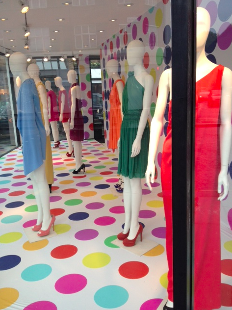 "I took these pictures of the Joseph window display at their shop in Knightsbridge, London. I really loved the unusual assortment of saturated bright and jewel toned colored dresses combined in such a fresh and sophisticated manner."