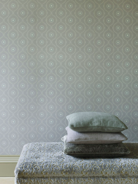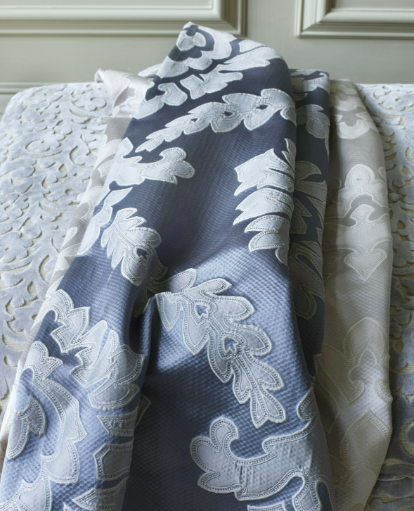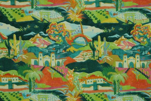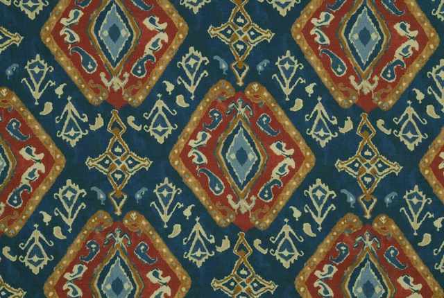 "We have a signature animal every season. This time it's the gazelle. Any time we put a creature in a design, it sells really well. People love their animals." An earlier collection she tells us had a snake design that formed a trellis-like pattern. Apparently the Robert Allen folks were on the fence, and now of course they spot the snake pattern everywhere -- in magazines on